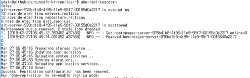 - Replica를 stop이 아닌 teardown시켜야 합니다.(ghe-repl-stop : X, ghe-repl-teardown : O)