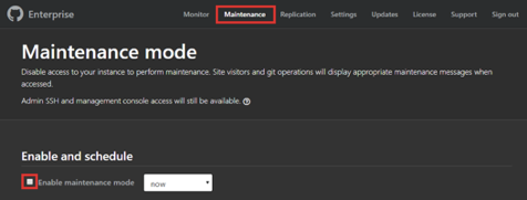 Primary에 SSH 접속 후 $ ghe-maintenance -s 또는 아래 이미지 참고