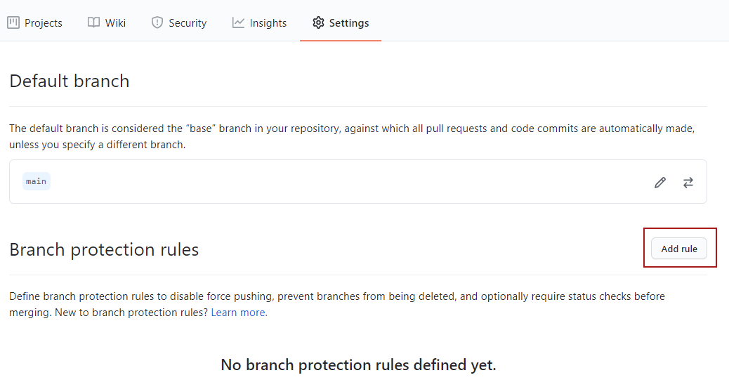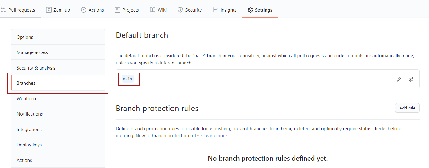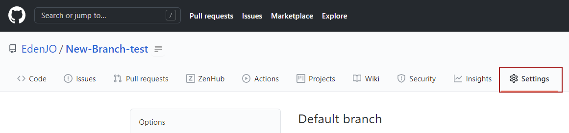 ② 현재 설정된 기본 브랜치를 확인하세요.