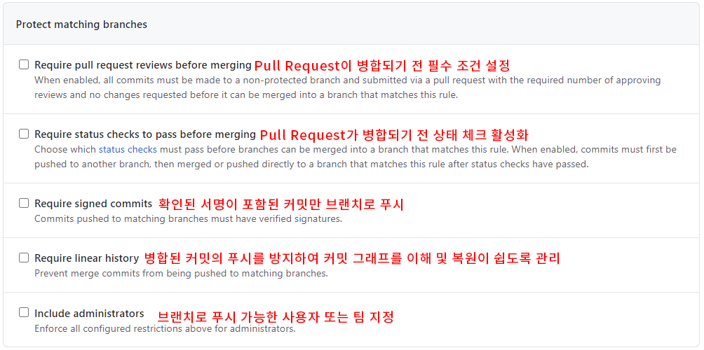 ④ 원하는 브랜치 보호 규칙을 설정하세요.