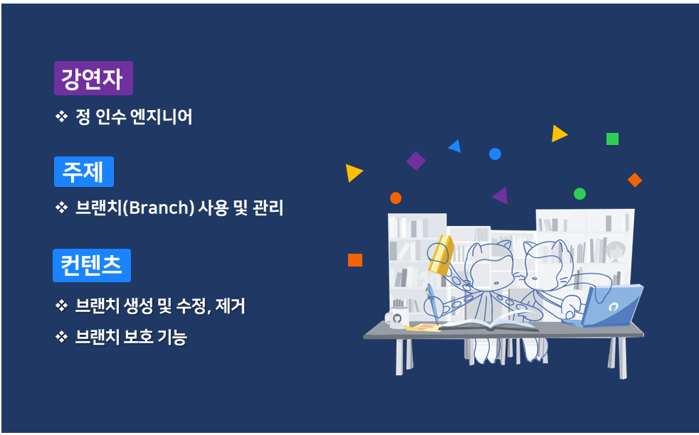 지난 시간에 이어 진행할 오늘의 GitHub 사용자 교육 웨비나의 주제는 바로 ‘브랜치(Branch) 사용 및 관리’입니다. 브랜치(Branch)는 여러 개발자들과의 협업을 위해서는 반드시 필요한 기능이고 GitHub를 사용하시거나 사용할 분들에게는 꼭 알아야 할 개념인데요. 과연 브랜치(Branch)가 무엇이고 어떻게 관리하는지 지금 바로 알아보러 갈까요?
