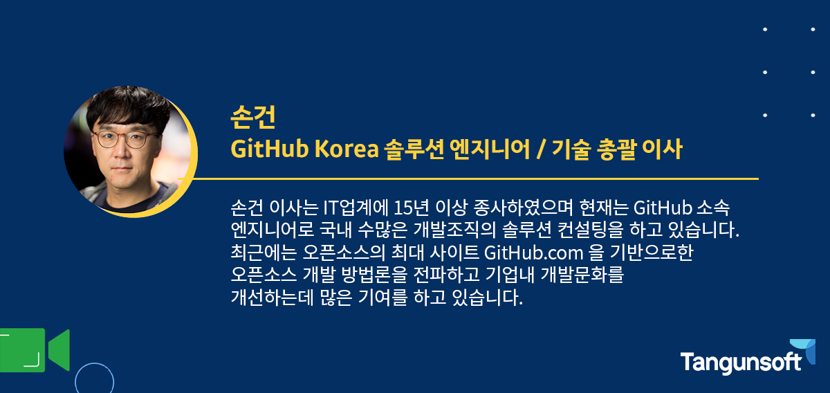 이번 웨비나는 GitHub Korea의 손건 기술 총괄 이사님께서 마이크를 잡으실 예정입니다.