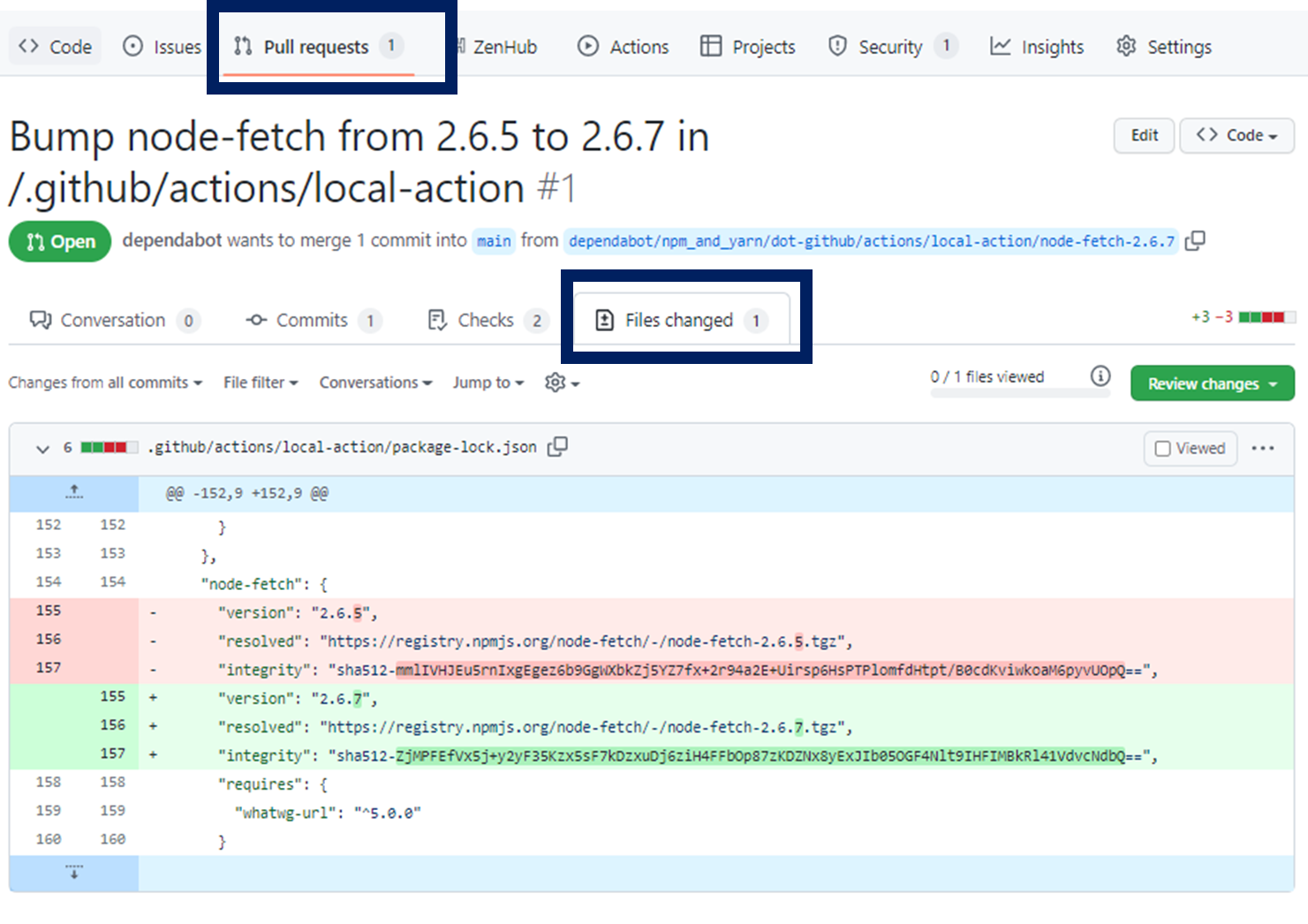 : 이제 의존성 변경 및 보안 영향도를 Pull Request 탭의 “Files changed” 부분에서 쉽게 볼 수 있습니다.