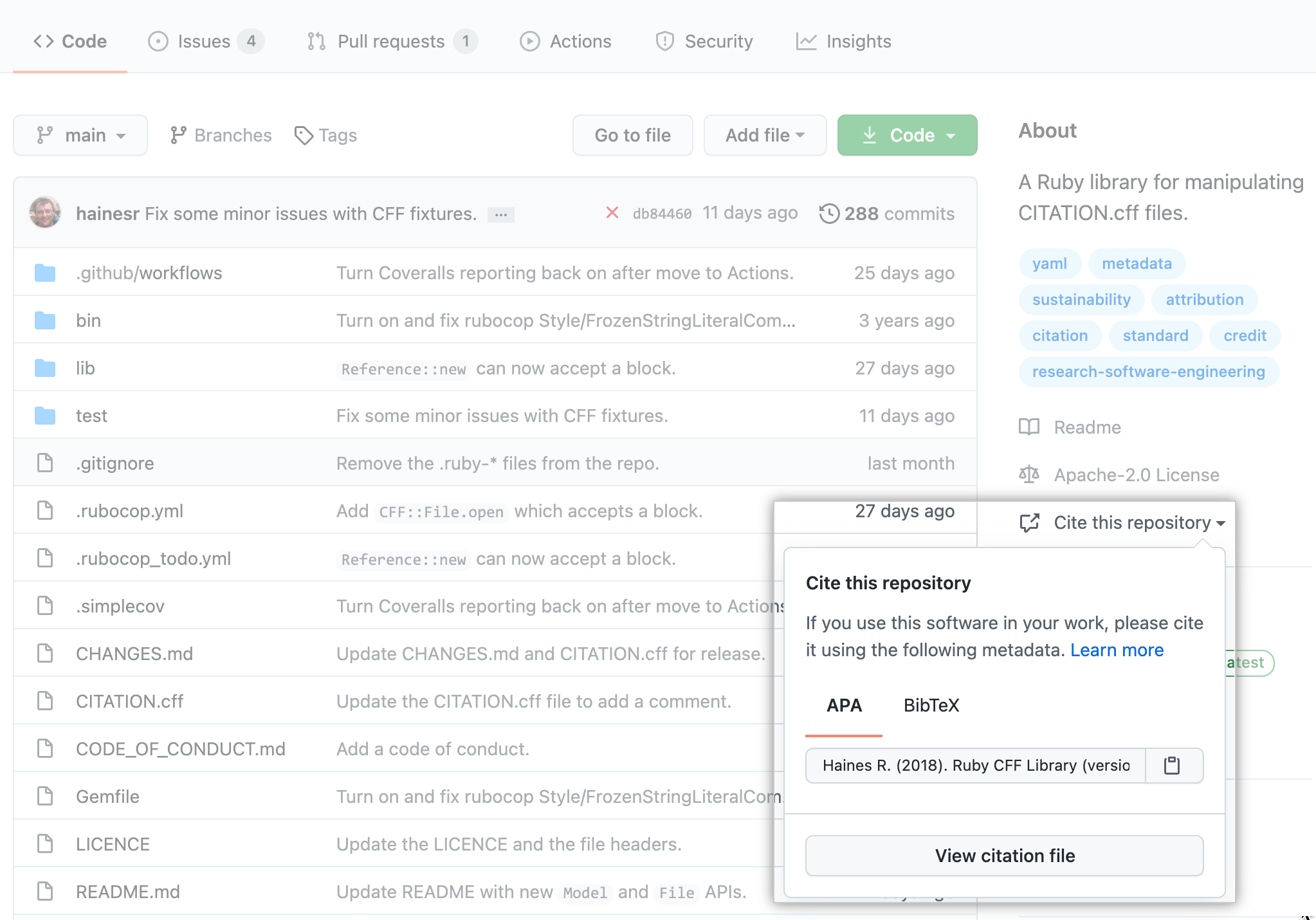 : CITATION.cff 파일로 타인에게 사용될 때 인용 방식을 자신이 지정할 수 있습니다.