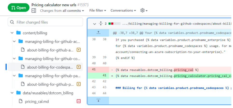 대규모 Pull Request 또는 복잡한 Pull Request를 검토하는 것은 어려울 수 있습니다, 하지만 이제부터는 새로운 파일 환경을 통해 더 쉽게 탐색 가능합니다. 개발자는 파일 트리를 사용하여 파일 사이를 빠르게 이동하고 검토 범위를 한눈에 파악할 수 있습니다.