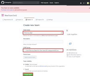 itservice_dept 하위에 3개 팀을 만들어 주기 위헤 itservice_dept 페이지에서 Teams 클릭 후 팀명 입력