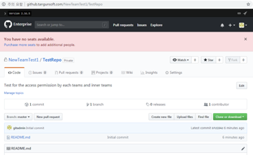 추가로 Infra_Team_Inner의 권한을 없애고 ITService_Dept에 권한을 부여했더니 Infra_Team_InnerUser는 저장소에 접근이 가능했다.(Infra_Team이 권한이 없더라도 더 상위 팀인 ITService_Dept에 권한이 있으면 깊이에 상관없이 하위 팀들은 모두 접근이 가능)