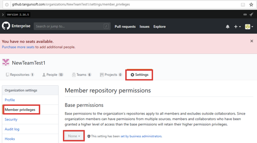 멤버의 저장소 접근 기본 권한을 None으로 설정