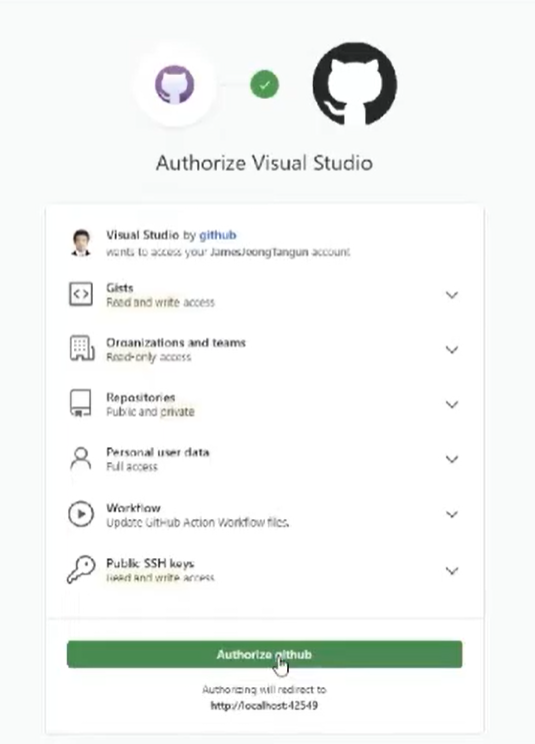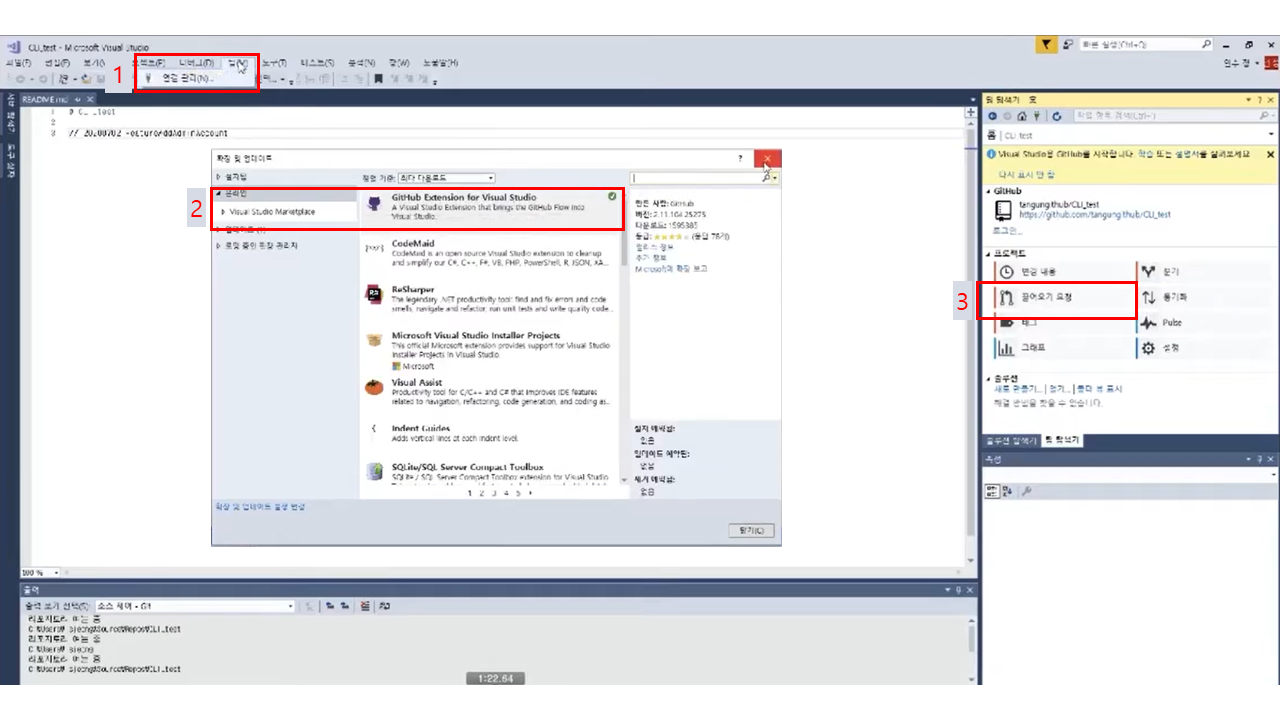 ② GitHub 확장프로그램을 이용해 Visual Studio와 연동해 주세요.
