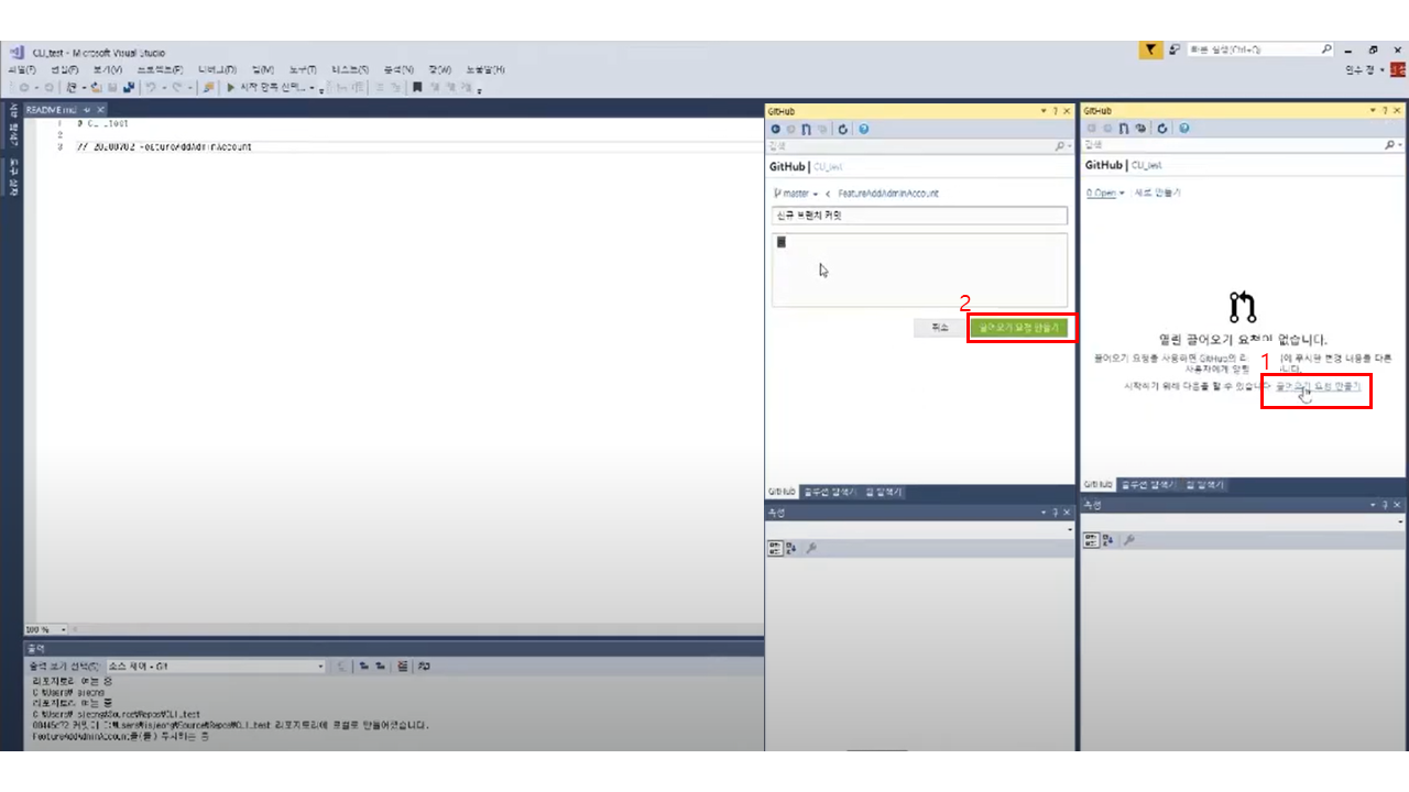 ③ 동기화와 푸시까지 진행하신 후 끌어오기 요청을 해주세요.