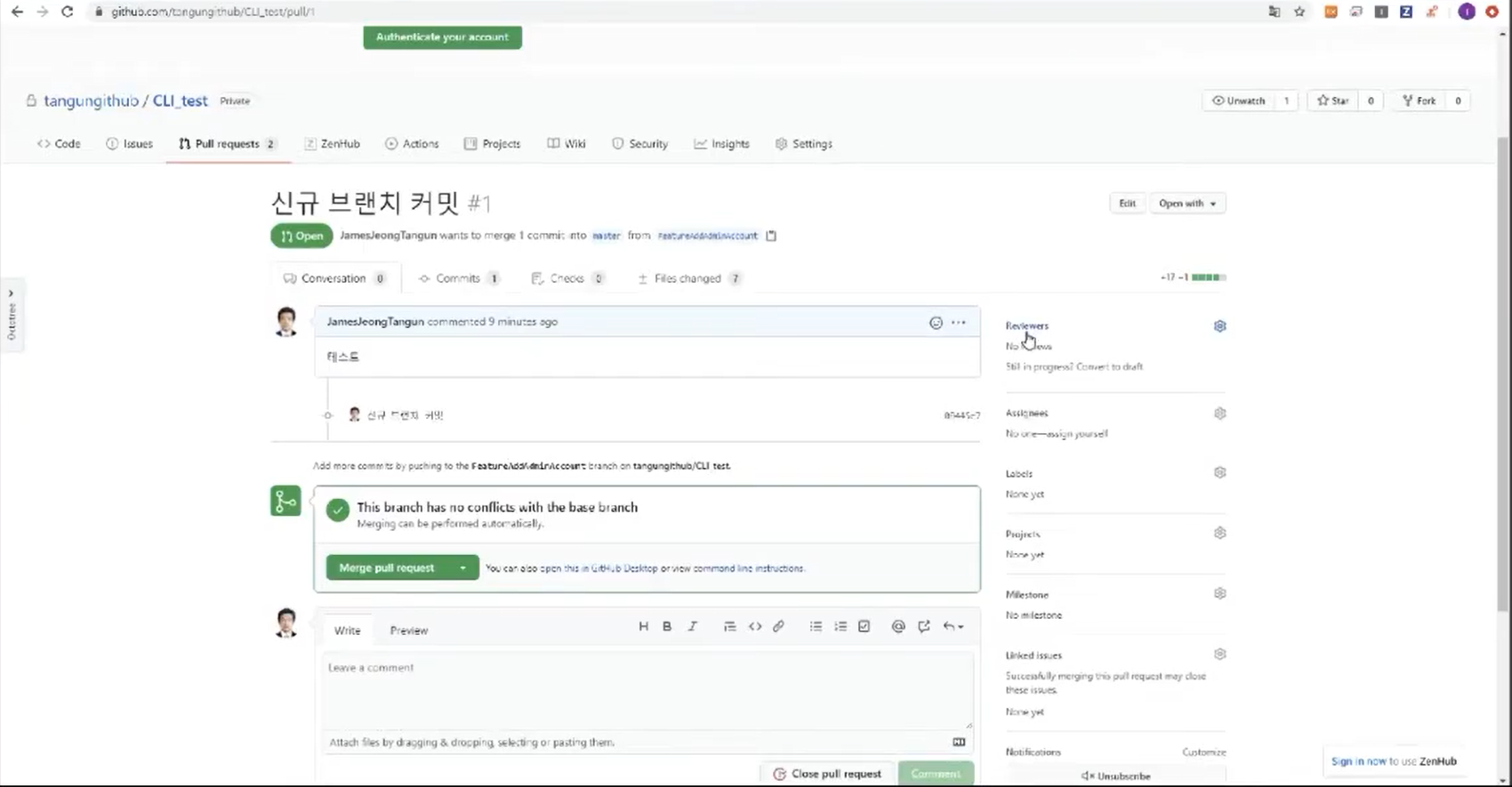 GitHub의 풀리퀘스트(PullRequest) 상세 설명