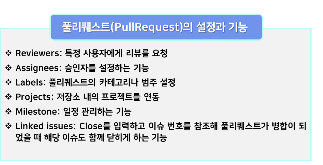특히 풀리퀘스트를 생성할 때 특정 사용자에게 리뷰를 요청하거나 브랜치 보호 기능 설정으로 승인 프로세스를