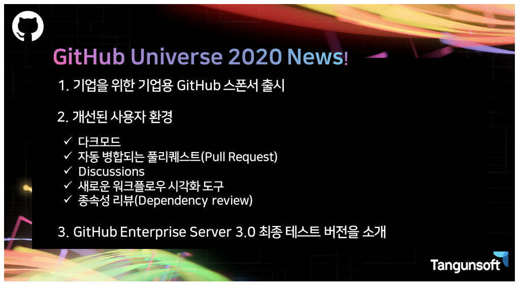 지난 12월 8일 ~ 10일에 GitHub Universe 2020이 개최되었습니다.